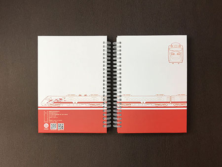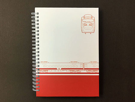 筆記本以白 / 紅色極簡風搭配條營造簡約風,內頁大面積留白,底下彩繪列車通過,生活日常中也能回味鐵道旅行時的悸動。